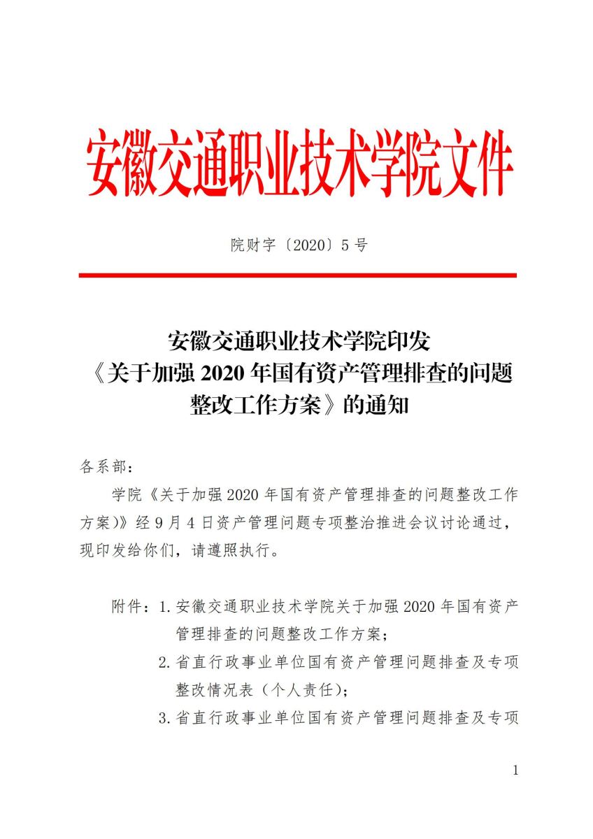 附件:1.安徽交通職業(yè)技術(shù)學(xué)院關(guān)于加強2020年國有資產(chǎn)管理排查的問題整改工作方案;