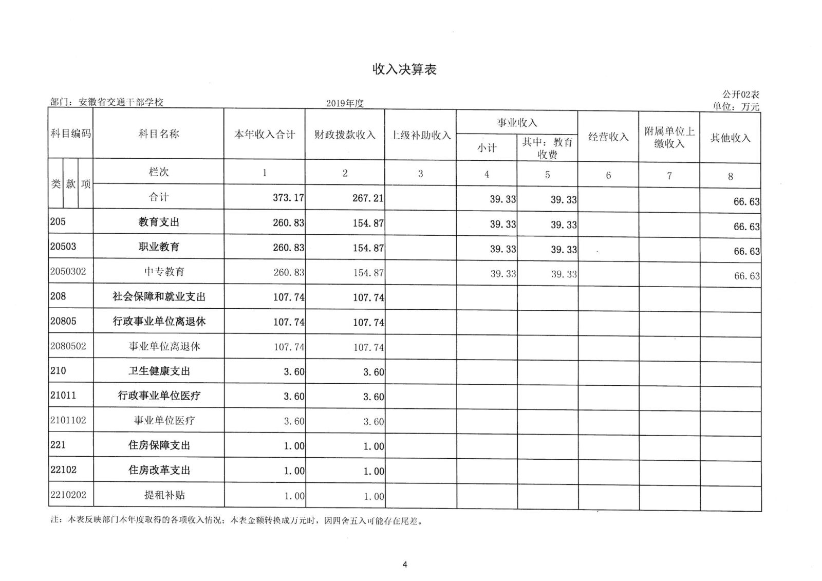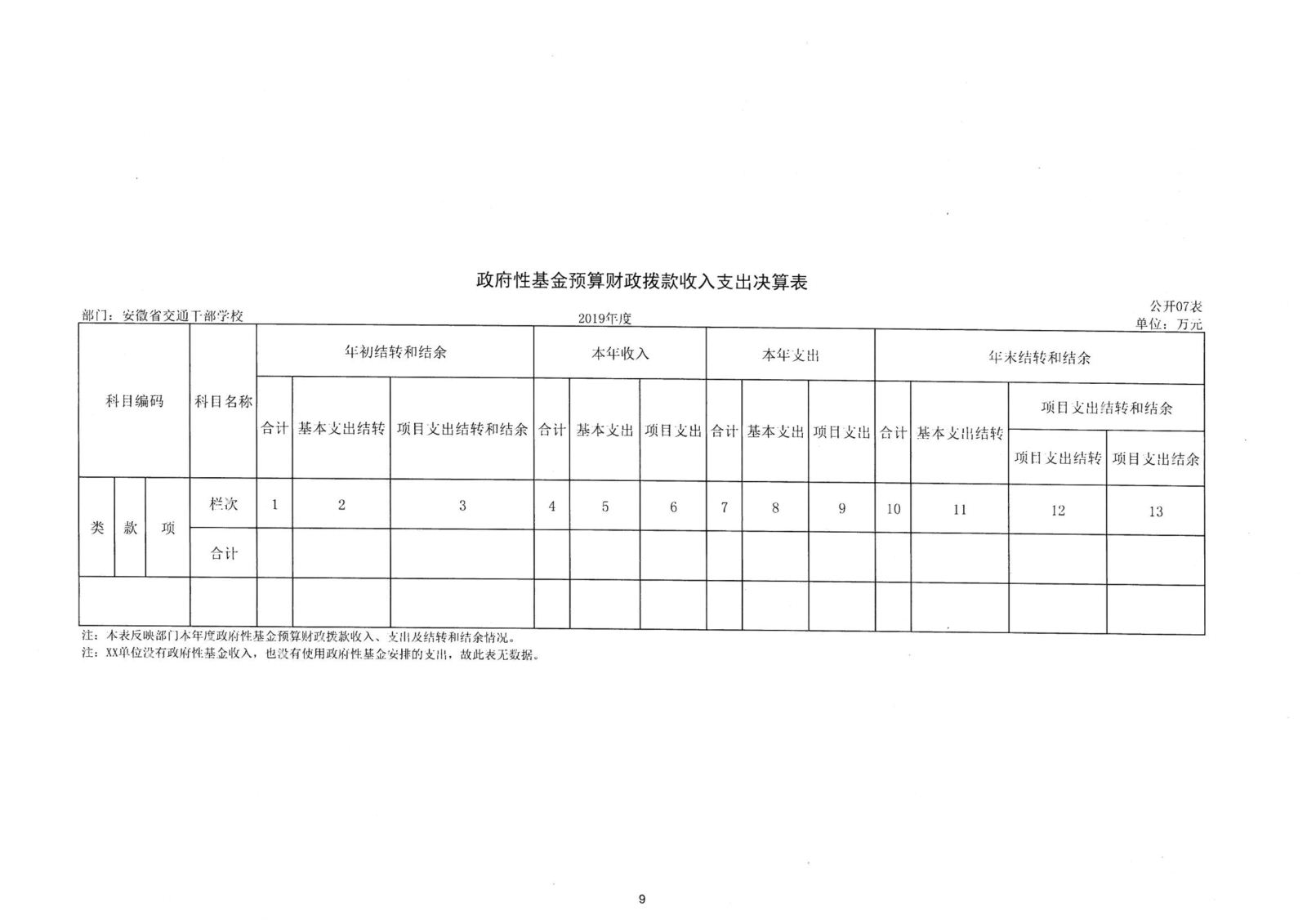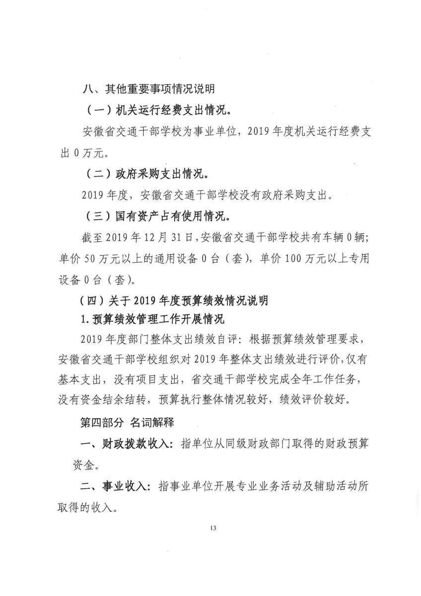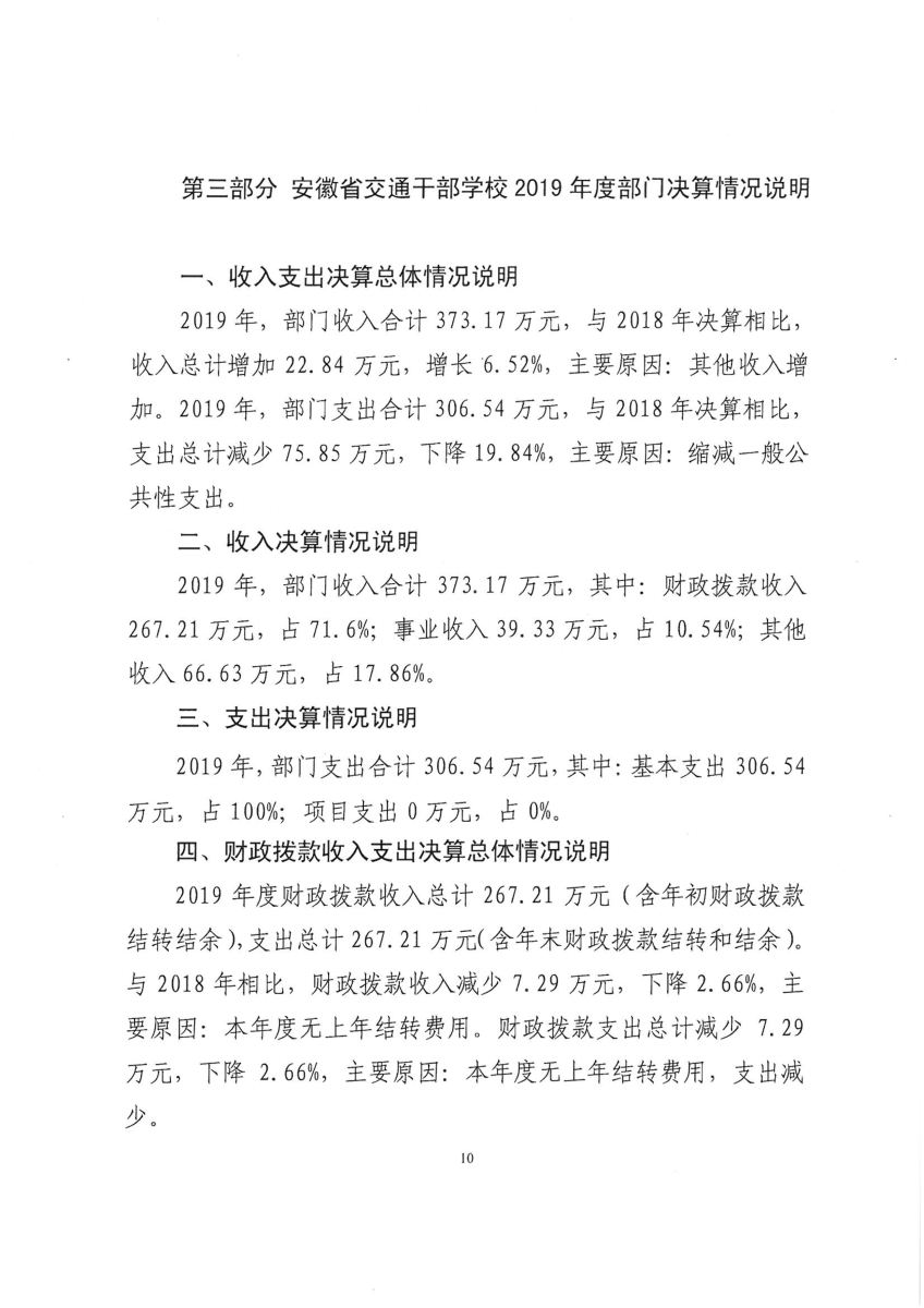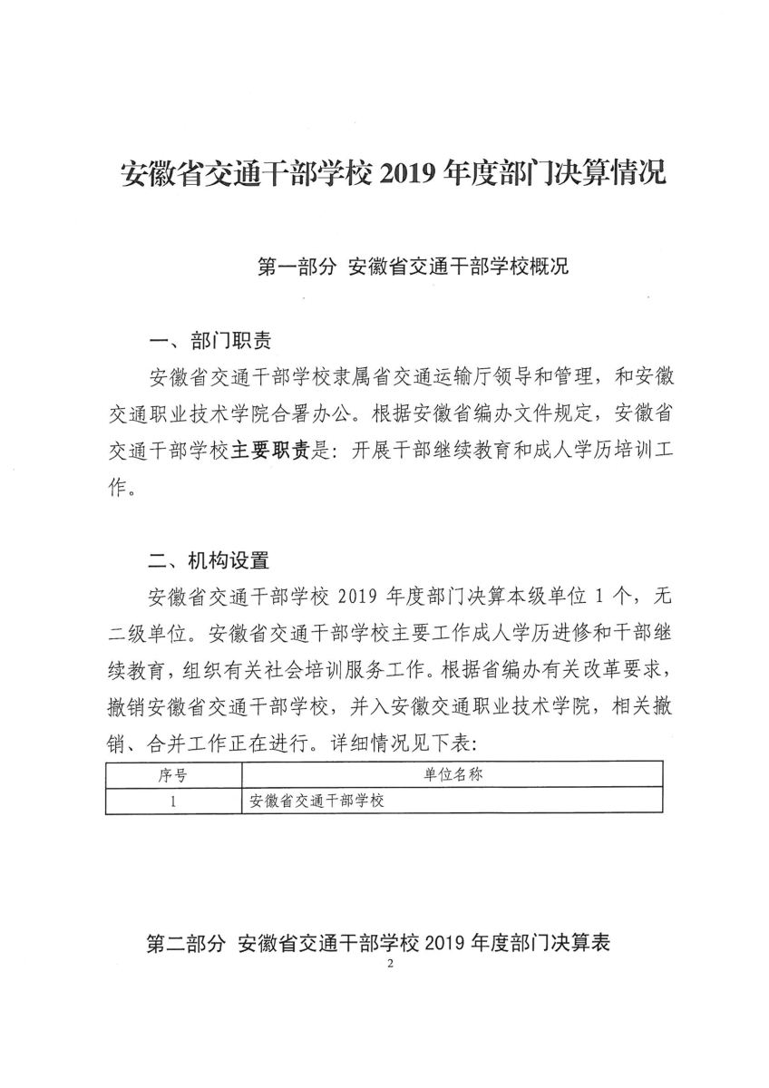 2019年度安徽省交通干部學校決算公開