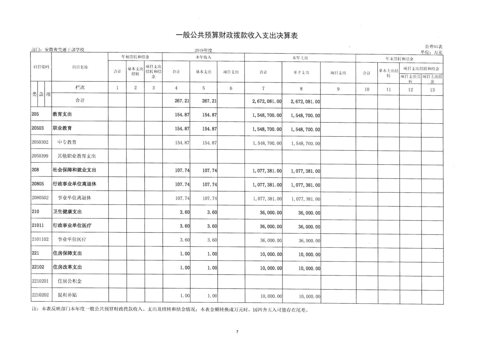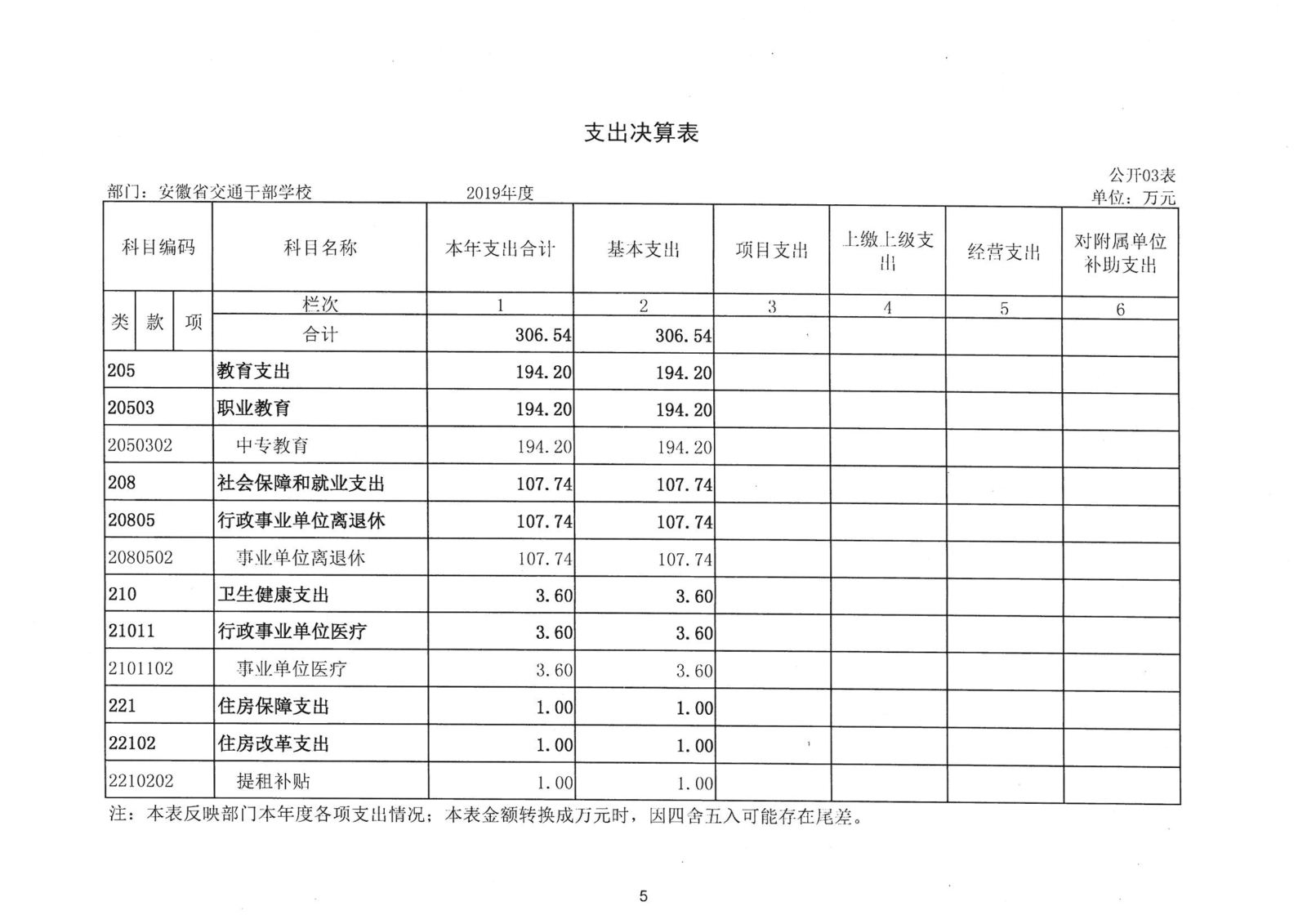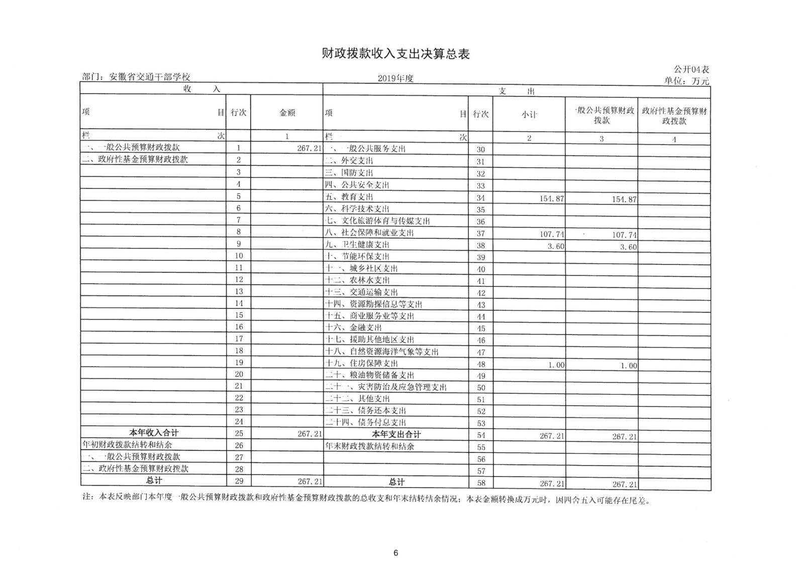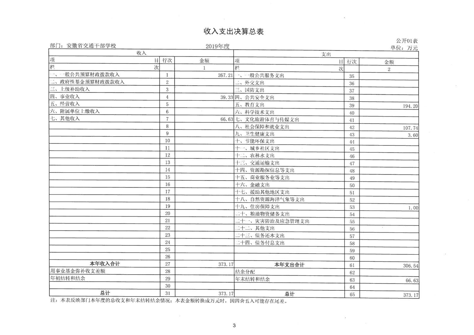 2019年度安徽省交通干部學校決算公開